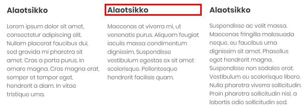 Kun lisäät sivustolle pienen otsikon, sen tekstityylin oletuksena on Heading 3.